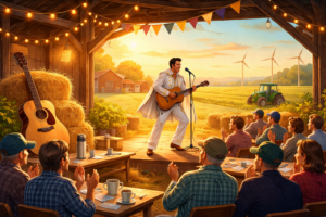 Till kaffet bjuds det pÄ musik med The Suspicious Minds, som tolkar Elvisklassiker. Gruppen leds av Göran Berglund, till vardags lantbruksjournalist pÄ Land Lantbruk.