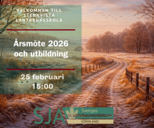 SJA Sörmland bjuder in till Ärsmöte och utbildning onsdagen den 25 februari 2026 pÄ Stenkvista före detta lantbruksskola.